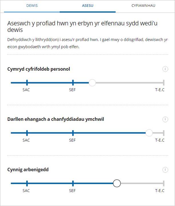 Rydym ni wedi gwrando ar adborth ymarferwyr a awgrymodd y byddai’r gallu i adnabod cryfderau a gwendidau yn hawdd mewn perthynas â’r safonau proffesiynol yn fuddiol. Rydym wedi ystyried yr adborth hwn i ddatblygu rhywbeth a fydd yn ddefnyddiol iawn i chi, yn ein barn ni.